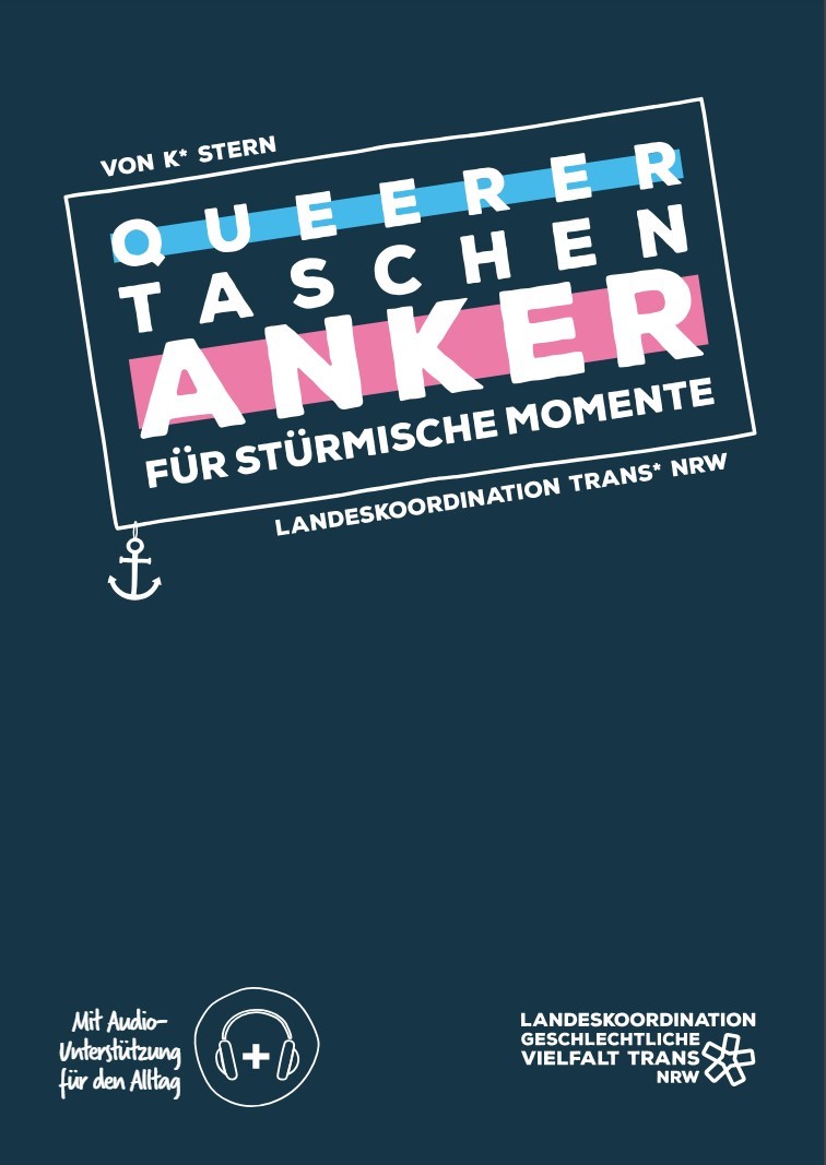 Dieses Multimedia-Büchlein bietet trans*_nicht-binären Menschen Unterstützung in schwierigen Zeiten. Aus der Community für die Community, mit Audio-Unterstützung für den Alltag. Finde heraus, wie dein Autonomes Nervensystem tickt und wie du selbstbestimmt zurück in den grünen Bereich kommst. Der Taschenanker hilft beim Umgang mit Minderheitenstress und Diskriminierungen, er enthält Infos, viele Mitmach-Seiten, Audio-Links und Anlaufstellen.